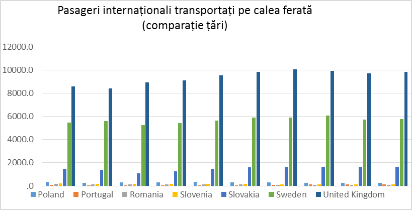 Fig. 1. Pasageri internaționali transportați pe calea ferată (mii). Sursa Eurostat (variabila rail_pa_intgong)
